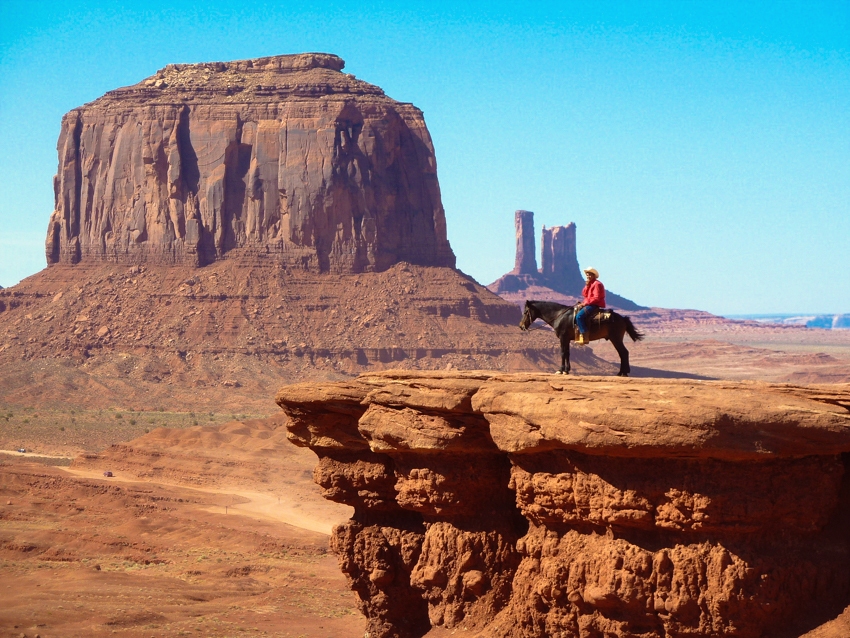 馬に乗ったナバホ族が岩の先端に立つ象徴的な写真を撮れるスポットとして有名で、ほとんどのツアーで必ず訪れる場所です。